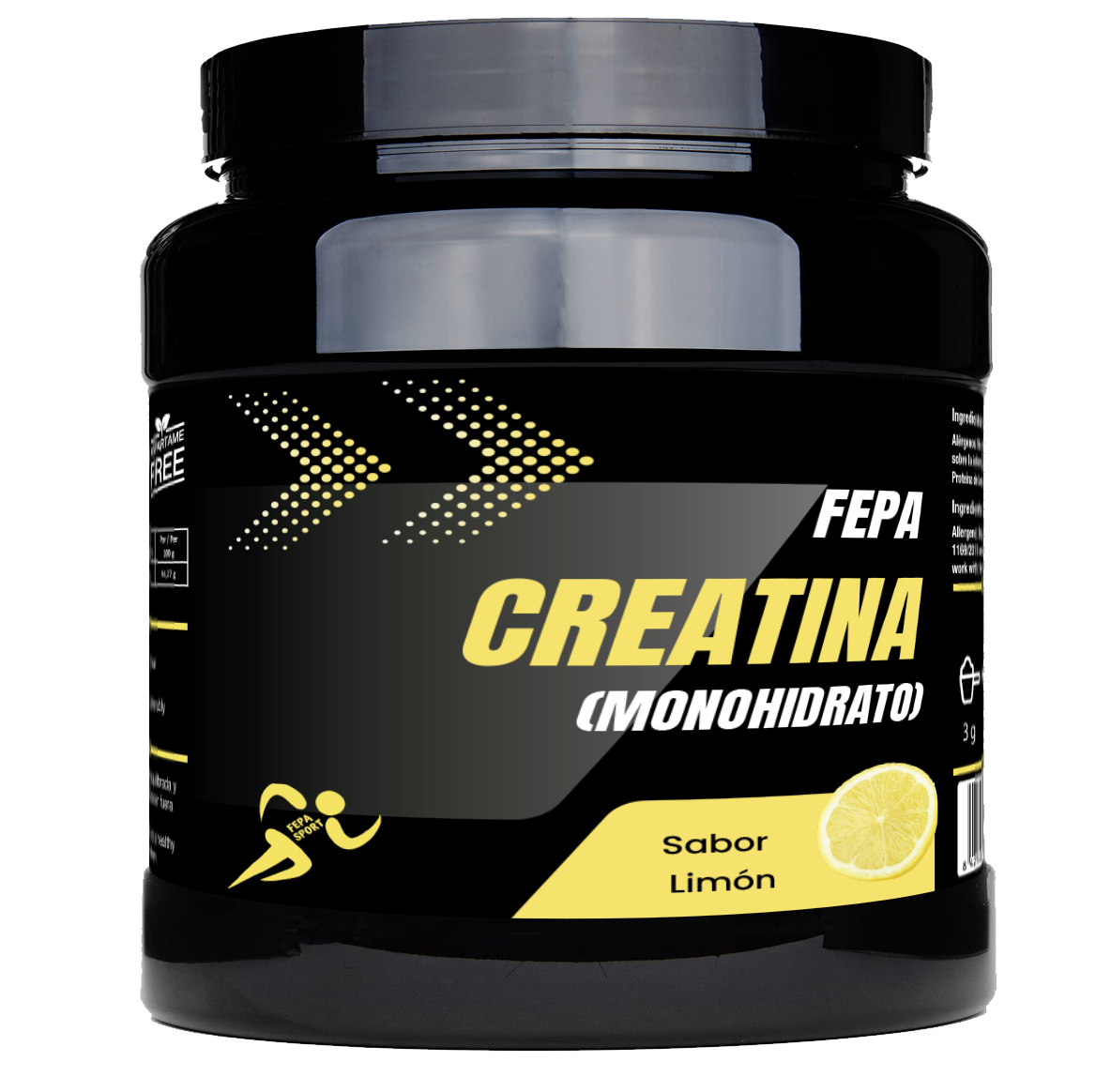 Ingredientes: Monohidrato de creatina, Aroma, Acidulante (Ácido Cítrico) y Edulcorante (Sucralosa).